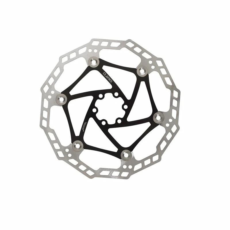 Die Clarks Floating Style Rotor, Dual Metall Bremsscheibe besteht aus einem Aluminium Spider und einer Edelstahl Bremsfläche. Dadurch ist die Scheibe sehr Steif und verzieht sich nicht so leicht . Die Scheibe hat eine gute Wärmeableitung und geringer Verzug. Zudem ist so eine hohe Wärmeableitung gegeben und die Scheibe ist sehr Hitzeresistent. Die Bremse kann natürlich mit Bremsen verschiedener Hersteller, wie