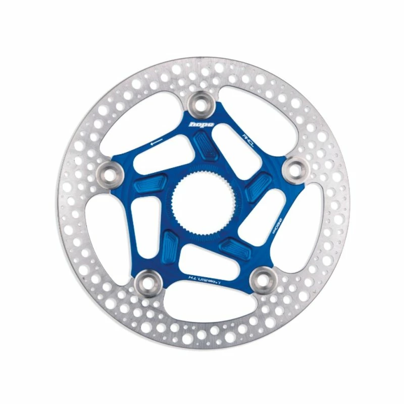 Hope RX Centre Lock Disc Rotor. Der Alustern darf sich dank dieser Vernietung bei Hitze ausdehnen und bei der Abkühlung wieder zusammenziehen und wird auf dieser Art bei solchen Temperaturschwankungen nicht verformt.