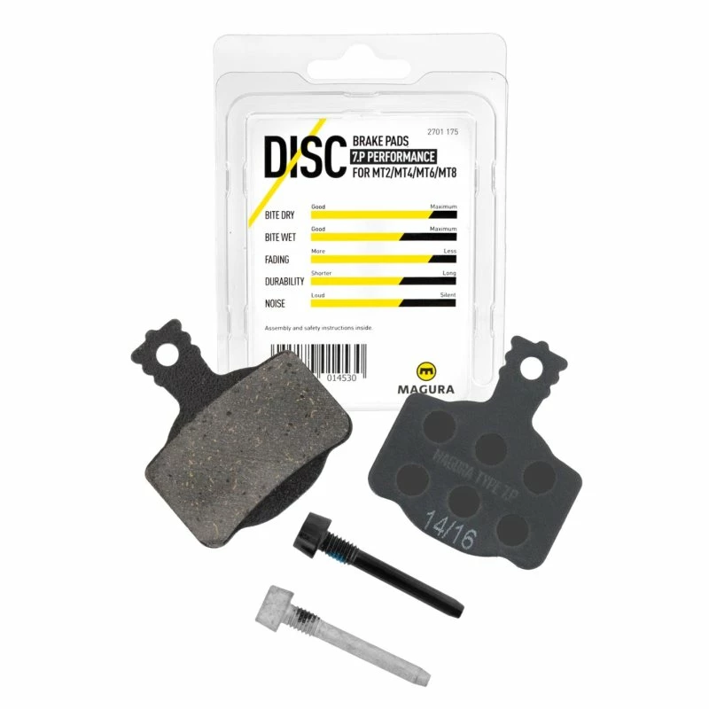 Magura, Bremsbelag, Type 7.P Performance (Nachfolger von 7.4) Performance, für lange Touren immer genug Sicherheit bei sehr guter Performance in allen Eigenschaften. Magura MT4, MT6, MT8 MT Custom, MT Trail Hinten. Lieferumfang: 1 Paar incl. Sicherungsstifte