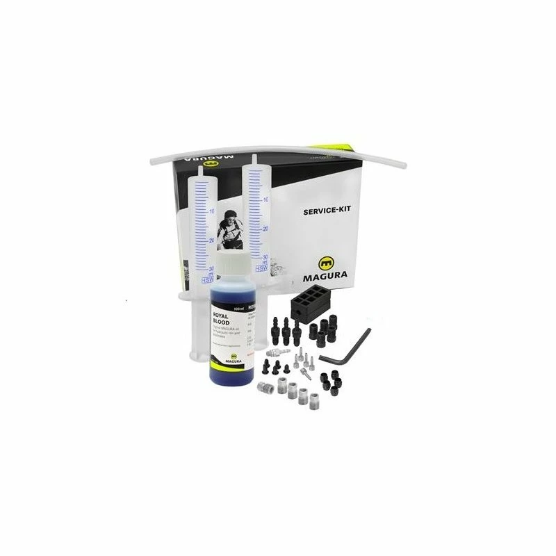 Original MAGURA Service-Kit Disc Enthält alles, was man zum Entlüften oder Leitungskürzen einer MAGURA-Scheibenbremse benötigt. Dieser Kit enthält alles für die neuen MT Scheibenbremsen, aber auch für ältere Magura Modelle und HS Bremsen geeignet. (Nicht für Louise und Clara bis 2002)